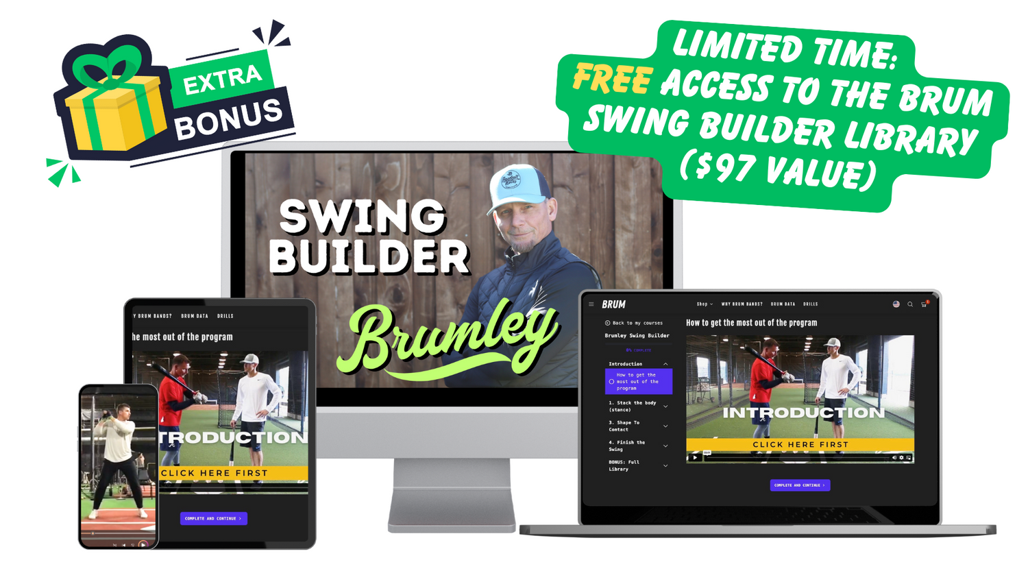 The Brum Band Bundles include everything you need to refine your swing and become more confident at the plate. These tools force proper hand position through the swing, eliminating rollovers and promoting a smooth hand path.